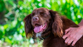 3. Place one hand under his chest for support and place the other over the heart (just behind the left front elbow)
