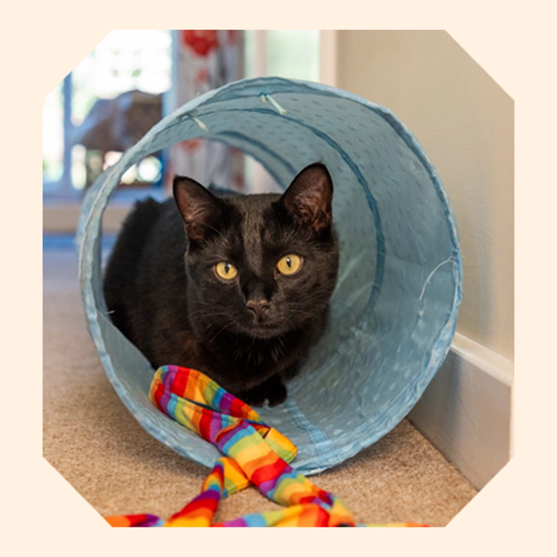 Sweet Coco had a rough start to life. This loving, happy girl spent a year in our care and was a favourite with staff and volunteers. Nobody could understand why she was passed around, time and time again – until, finally, she found her forever home, where she enjoys being spoiled rotten. Happy endings like Coco’s are only possible with your support.