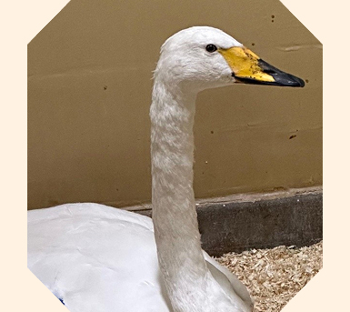 The injured swan had swallowed fishing tackle and an X-ray confirmed a hook was lodged deep inside. Gentle handling and expert surgery removed the obstruction, and days of rest allowed him to regain his correct posture.